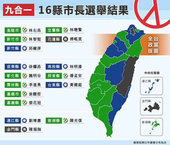 九合一選舉結果揭曉,除了基隆、澎湖、新竹市、嘉義市、彰化縣變天不說,國民黨在六都更是只有新北市險勝,桃園市小輸,其餘台北市、台中市、台南市、高雄市全面大潰敗。這無異證明