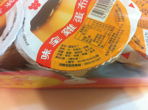 味全布丁原料:水、乳製品、砂糖、果糖、雞蛋、植物油、乳化安定劑、香料、焦糖、精鹽、食用黃色4號、5號色素。 統一布丁原料:品名:統一布丁(雞蛋口味) 原料:水、蔗糖、奶粉、高果糖糖漿、麥芽糖、椰子油、天然色素(焦糖色素、黃梔子、紅麴色素)、刺槐豆膠、玉米澱粉、香料、乳化劑、食鹽、鹿角菜膠、乳酸鈣、咖啡粉、可可粉、雞蛋萃取物。