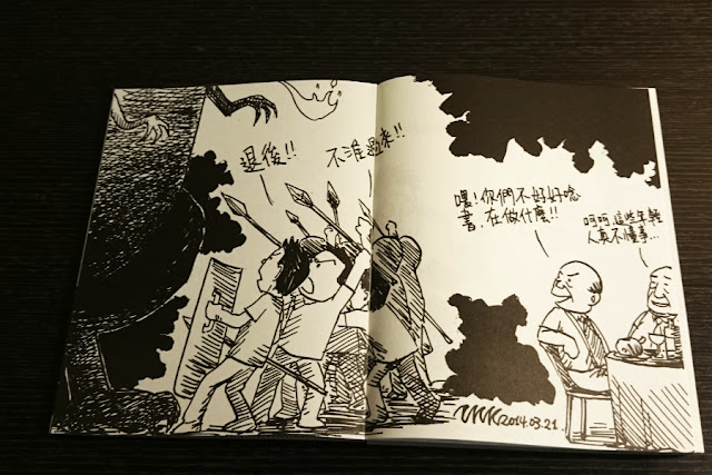 在書的內頁,有很多漫畫都是很豪邁地滿版展開,像是圖3那樣。圖3這張圖來自於《真是不懂事》,如果你有注意到簽名日期,那正是 318 之後畫的。這張圖對我個人來說有幾個紀念價值:(1) 從這張圖開始,THK 的專頁開始破百;(2) 這是我第一張被翻譯成外語的漫畫,請見《真是不懂事 -- 法文版》。