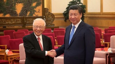2014年9月26日,中共總書記習近平(右)在北京人民大會堂接見新同盟會會長許歷農(左)。 圖:中央社資料照片