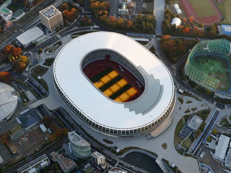 綜合媒體報導,自舊的「國立霞丘陸上競技場」於2015年拆除後,「日本新國立競技場」從2016年12月動工至今剛好3年,場館結構為地上5層與地下2層,建築材料使用來自日本47個都道府縣的國產木頭,並以日本傳統建築技法作為設計元素,配合明治神宮外苑的綠色景觀,被日媒稱為「森林體育場」。