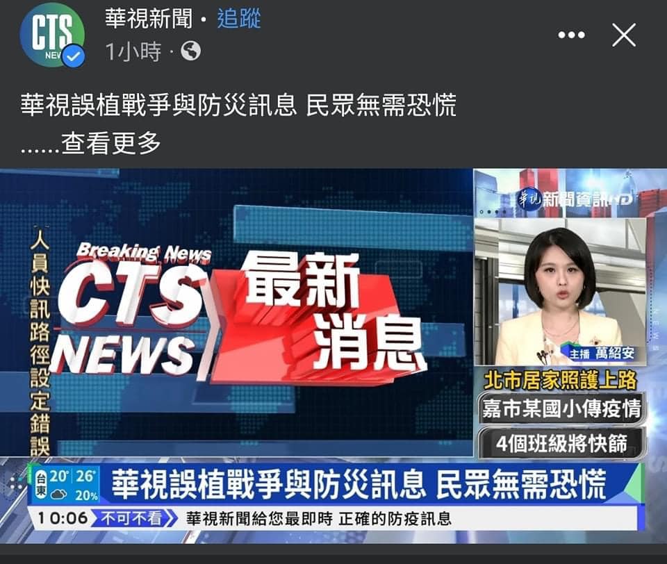 〔記者凌美雪/台北報導〕華視新聞出包,於今(20)日跑馬燈出現「新北市遭共軍導彈擊中」、「總統發布緊急命令」等錯誤訊息,但實際是新北市災害防救演習內容。對此,文化部長李永得表示,這是一個絕不應該發生的錯誤,文化部鄭重致歉,除要求華視立即提出事件報告,並應深切檢討,絕不得再犯。