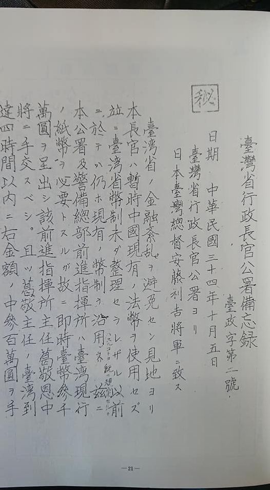 統派人士說,終戰不久日本人故意運來大量臺銀券,讓日人收購物資引揚返日,導致臺灣通貨膨脹。但事實上戰爭末期臺日交通中斷,通貨臺銀券紙幣極度缺乏,加上陳儀為阻斷中國內部的惡性通貨膨脹,乃要求沿用臺銀券,因此由大藏省委託鹽見俊二押運臺銀券,並由美軍允許監督,一部份提交行政長官公署所用,一部份留給總督府殘務事務局運用,即便後來造成所謂的收購物資,繼續流通臺銀券也是陳儀所允,怎麼能夠怪日人的陰謀論呢?