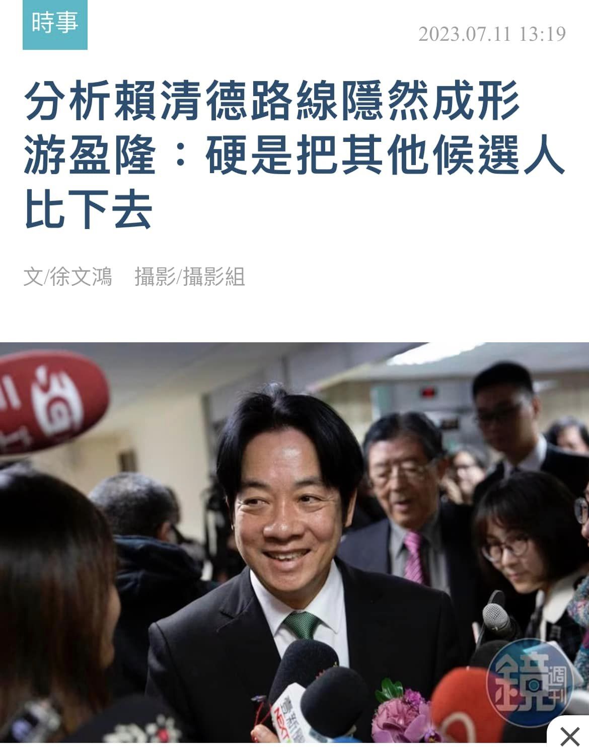 說到「希望」,針對賴清德日前大聲說出「台灣總統走入白宮」,游盈隆教授不但評曰:「硬是把其他候選人比下去了。」(圖為:鏡MirrorMedia),且期待其他總統候選人表態。