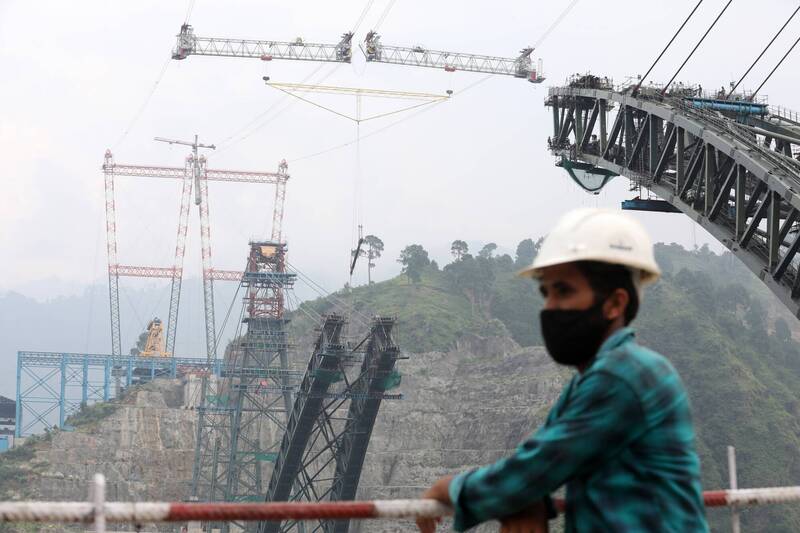 印度歷經15年打造,喜馬拉雅山區的全球最高鐵路橋梁「契那布大橋」,即將通車。(歐新社)