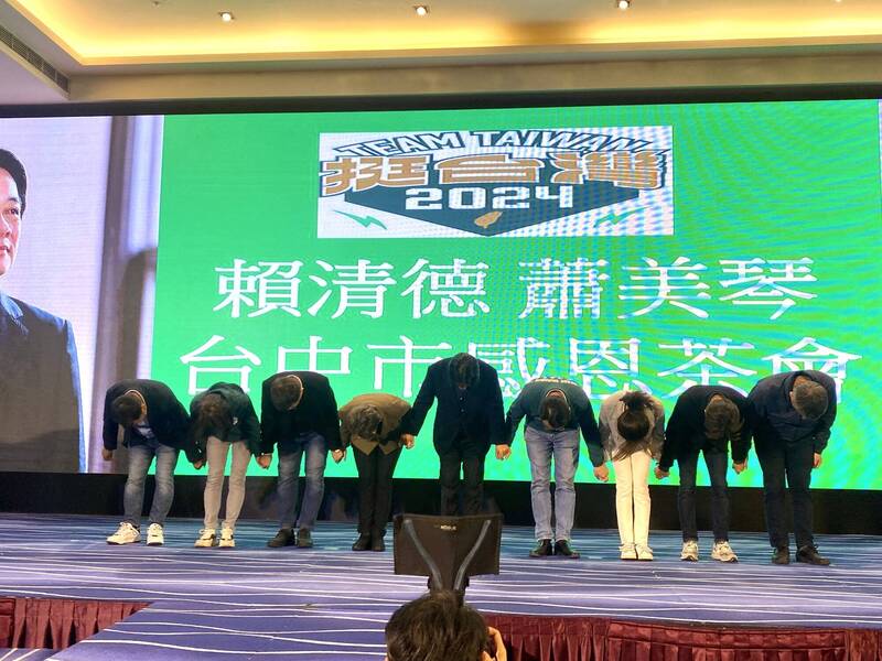 〔記者蘇金鳳/台中報導〕民進黨總統副總統當選人賴清德及蕭美琴今天在台中市舉辦感恩茶會,賴清德表示,這次選舉感謝支持民進黨的民眾,沒有支持民進黨,代表有沒做好的地方,雖然社會不以成敗論英雄,但還是要自立自強,要檢討改進,可能過去中央執政「屈得不夠低,腰彎得不夠彎」,也可能對手進步更多更大,但民進黨理想沒有改變,意志更堅定,很快就得到民眾支持。