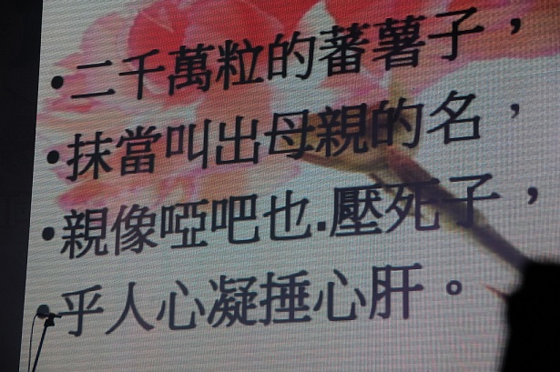 「母親是山,母親是海,母親是河,母親的名,叫臺灣」。