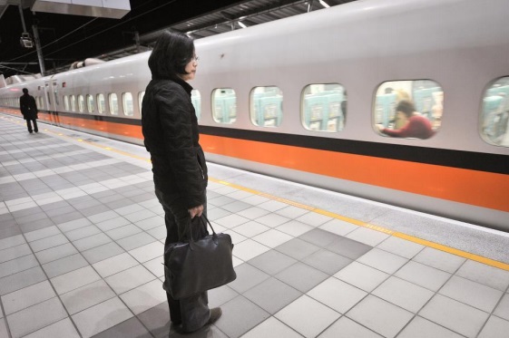 敗選後,高鐵台南站月台上風塵僕僕的小英(網路截圖)