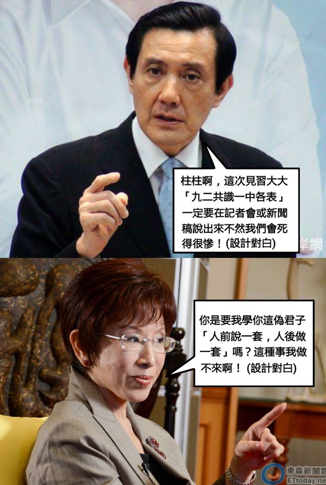 我們的柱柱姊最真誠勇敢了!才不會像你那樣呢! 馬英九籲講一中各表 洪秀柱:怎不講統一 http://udn.com/news/story/1/2045180 馬英九還說,黨「九二共識、一中各表」基本政策遭動搖,連帶讓黨員有疑慮,黨就無法真心團結,像是日前黨籍立委黃昭順發難,就是一樣原因,這也不利黨的募款。 聆聽與會者談話過程,原本臉色沉重,低頭不發一語的洪秀柱,此時卻發言嗆馬英九,強調黨產遭清查與和平政綱是兩回事,不要混為一談。馬解釋洪的主張已影響黨向心力。洪再回嗆,「你講的我都知道,但兩岸談判很複雜」,強調會透過管道講清楚。 洪秀柱更質疑馬英九,表示九二共識的內涵有很多,其中還有兩岸要共同追求統一,為什麼馬「只講各表,不講統一」,馬一時耳背未會意過來,與會者趕緊打圓場,表示洪所講的「是國統綱領,不是九二共識」,並用手機查國統綱領內容給洪看。 清楚洪秀柱質疑後,馬英九也拿出筆記與手機說明「國統綱領」與「九二共識」差別,但洪聆聽與會者解釋過程,只是低頭自顧自的補妝、塗口紅,最後只淡淡回應一句「我聽到了」,草草結束對話。 #挺柱 #黨內互打免費