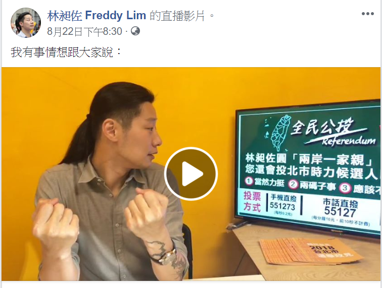 林昶佐做為一個獨派政黨的重要黨員,這兩則貼文並無妥協獨派立場的跡象。若不以陰謀論看,他應不是只為了替時力議員尋找母雞的政治權謀,他有更長遠的焦慮,他極想知道為何年輕人支持柯文哲?圖片來源:林昶佐Freddy Lim臉書