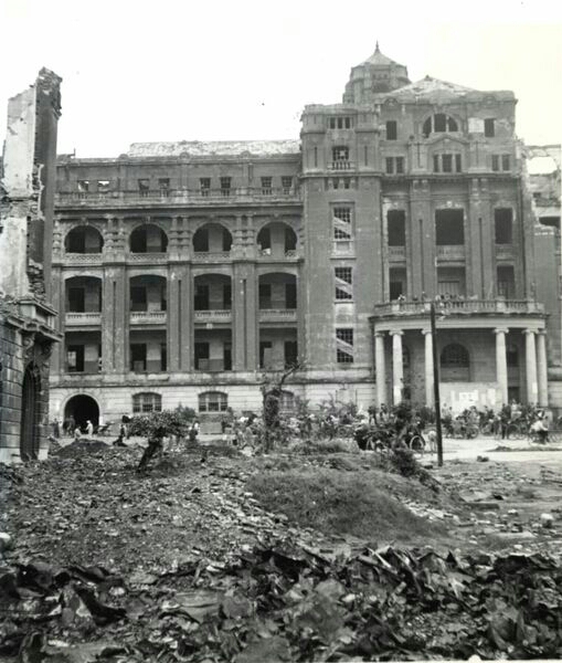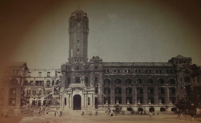 空襲燃燒後,另一個角度的總督府 ( 今總統府 ) 。
