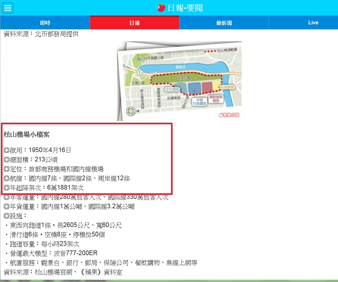 每到選舉,松山機場遷建的議題就會浮上檯面,因為這往往被當成是選舉的利多。一方面是空出的土地可以「好好利用」,航高限制可以取消,都市就可以更肆無忌憚地開發房地產,一堆人等著數鈔票。小英陣營都還沒選上總統,竟然就被姚立委給綁出這個政見要2020年廢掉松山機場。大家可以看看桃園那個什麼爛跑道,每次出國尖峰期間怎麼塞爆。重點不在航廈蓋好沒或可容納多少人,先想想跑道吧~ 連一條跑道都修不好,廢掉松山機場只是畫大餅。而且,離島交通怎麼因應?都要民眾去桃園搭嗎?很多問題,不是你臺北市說了算,不是你一個立委為了選票說了算。也該問問桃園居民吧。 這兩天媒體在報導松山機場的議題時, 松山機場是「1950年4月16日啟用」這件事又被一再提起。例如蘋果日報的「小檔案」 。松山機場真的是「1950年4月16日啟用」的嗎???
