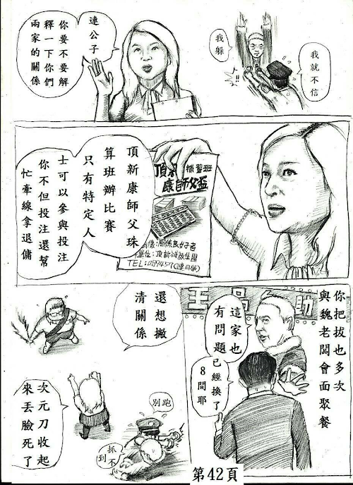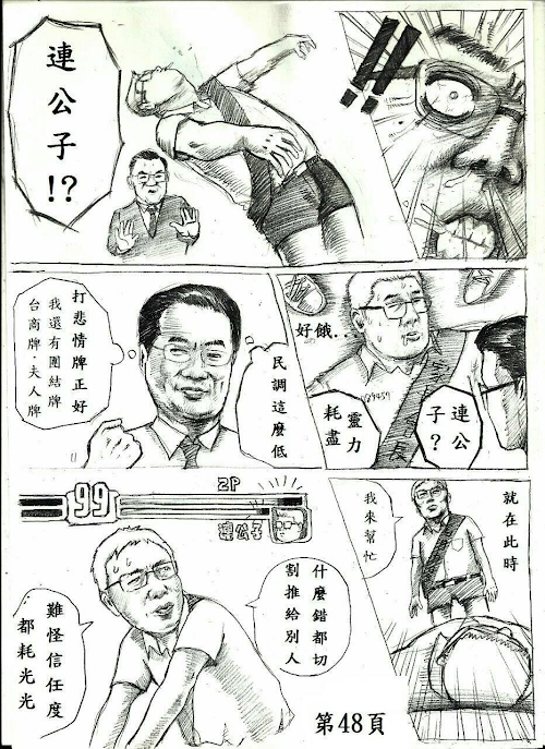 台北市長候選人選情激烈,選戰倒數計時,國民黨藉參選人連勝文與無黨籍參選人柯文哲選情進入白熱化,一方批評連權貴形象,另一方則緊咬柯MG149,兩方陷入口水戰,讓選民看得一頭霧水。就有網友將連柯之間的口水戰畫成連載漫畫「天龍無間道」,以幽默有趣的手法來表現雙方之間的競爭,由於太過寫實,有網友表示跪著看完,還有網友跪求續集!第一話於此:「天龍無間道」神作太寫實!網友跪求續集第二話於此:「天龍無間道」第二話來了第三話於此:「天龍無間道」第三話來了※以下圖片獲得原PO同意刊載(點圖放大)※以上圖片獲得原PO同意刊載原作真有才!圖片出處:Jerry Kuo第一話:「天龍無間道」神作太寫實!網友跪求續集第二話:「天龍無間道」第二話來了第三話:「天龍無間道」第三話來了