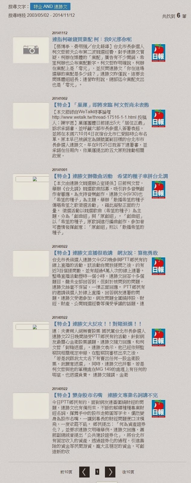 國民黨台北市長候選人連勝文在對手柯文哲於11月10日公布第二波競選經費後,詢問柯文哲陣營「業配」花多少?柯11日答覆0元以後,連營也在12日繞了好大一圈,才答覆0元。這或許是本次選舉的最大笑話。