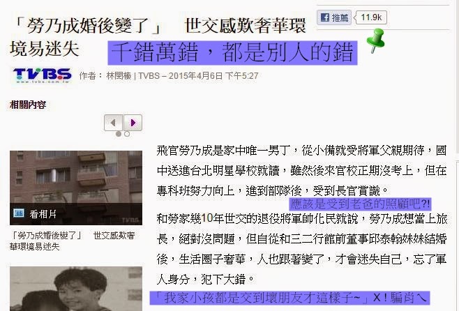 帥化民說勞乃成本來很努力向上,是結婚後生活圈變奢華,所以人也跟著變了… XTMD,我聽了快吐了,都什麼年代了,不要再搬「我家小孩本來很乖,都是交到壞朋友才變成這樣子」的老台詞了好不好,帥老???