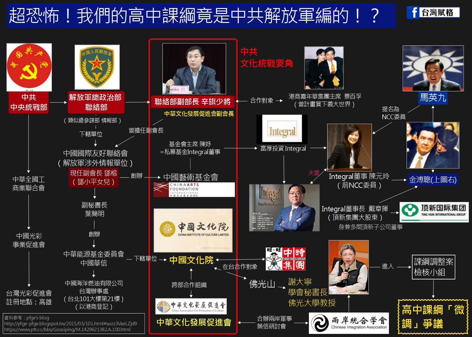 當然,辛旗也知道馬英九無能又不可靠,所以消滅台灣主體性的工作還是要自己來。根據熱心網友細心追查,發現了令人恐懼的事實:中國解放軍已經深深滲透進台灣的政商和文化圈,而能夠進一步染指台灣的教育。