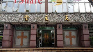 因為學校不教,做研究的人也不多,老一輩經歷過的苦難,也就很 尷尬地被遺忘。今天早上,我特別去了一趟從小我念的聖心幼稚園旁的天主教堂。這座台北最初的天主教堂位於民生西路旁,也就是靜修女中附近,1910年代便 已經落成。然而,連教堂也在七十年前的台北大空襲中被炸開,攝影前輩張才拍的照片,露出整個被剖開的教堂內部,上面「萬有真原」的題字依然高掛。