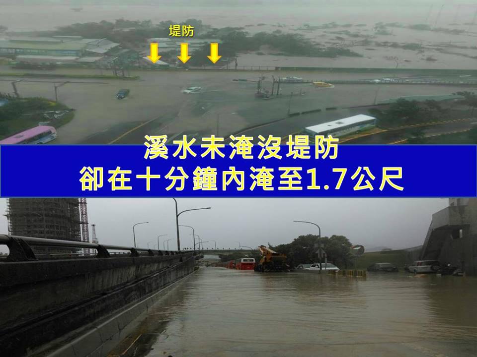 面對堤防有缺口,問三歲小孩都知道要補起來,可是在颱風來時,新北市政府竟然就只用沙包與護欄來擋水,真擋得住就算你朱立倫英明,可是淹得一蹋糊塗啊!