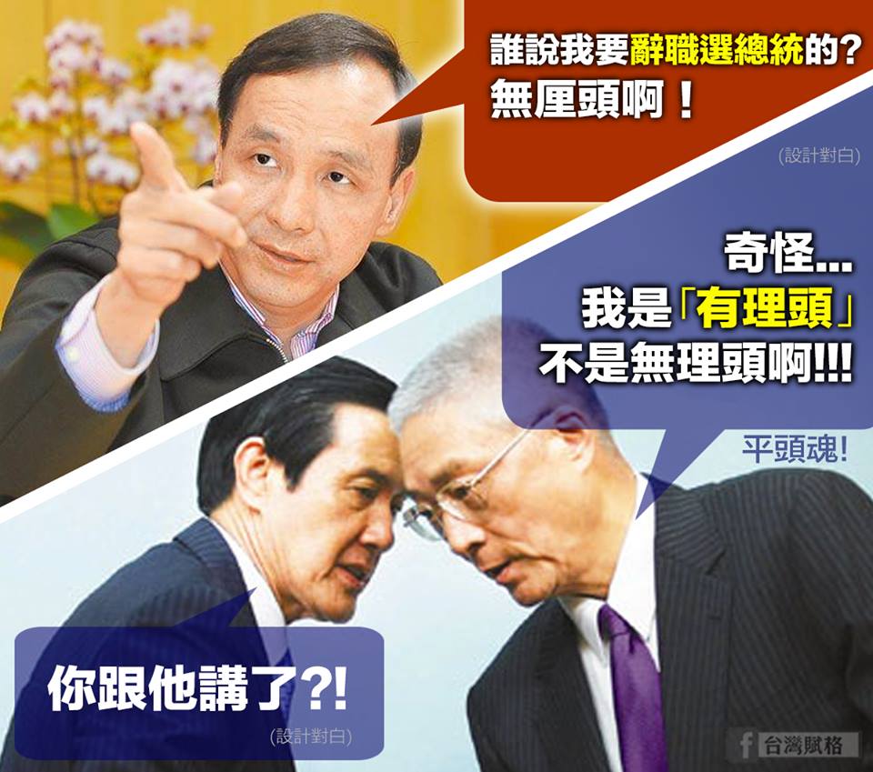 早上才傳說辭市長選總統是「無厘頭新聞」,傍晚又傳出願意承擔,怎麼這麼無厘頭啊~叫常理頭的吳敦義怎麼辦? --- 辭市長選總統?朱立倫:無厘頭新聞 http://udn.com/news/story/1/1229670 「換柱」後誰選? 朱立倫鬆口:我願意承擔! http://www.appledaily.com.tw/realtimenews/article/new/20151005/705421/