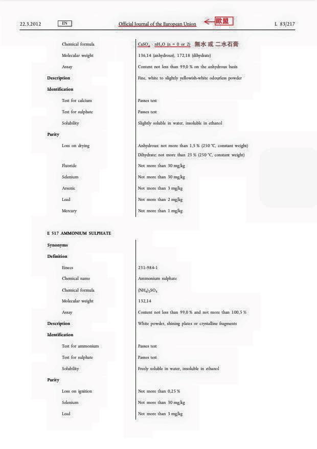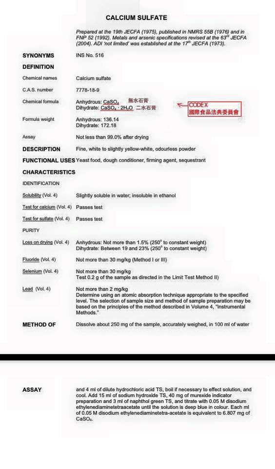 1. 台灣的食品添加物,是正面表列。沒列入許可,當然不應添加。但先進國家都許可無水石膏當成食品添加物。