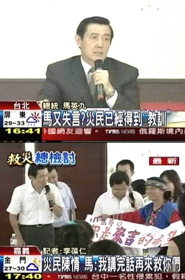 馬先生向來的最愛就是他的身材和面子,所以相當然耳在卸任前會試圖把他的 Bumbler Ma、 鹿茸馬、甚至魯蛇馬…等不登大雅之堂的印象搽脂抹粉一番。但萬萬沒想到的是他竟然打起八八風災的主意,要把近年來台灣人民最慘痛的災難,「更正」為是他的「政績」;果真是不負當年 CNN 主播對馬先生 THIS MAN「這個傢伙」的稱號。