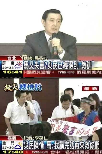馬先生不了解的是,國際社會可不是台灣一些缺乏記憶的選民。作為公眾人物的他,不僅凡走過必留下痕跡,絕大多數的國際媒體也沒有藍綠之分或意識型態。當年馬英九在接受外國媒體訪問時,在一個句子裡面用了七次 THEY (他們)來談已經「受到教訓的」災民,接著又在另一個句子裡面用了四次 THEY 來討論國軍應該改進加強的地方,早已讓全世界認證到他「不沾鍋」的無情。也難怪當年亞洲時報(Asia Times)會以「緩慢、無能、和心不在焉」,以及「馬英九和國民黨對台灣南部和人民的無情,缺乏愛心和任性」,來描述馬政府在八八風災中救災的反應和卸責。事實上,當行政院長劉兆玄被迫下台時,許多西方媒體的報導都一致指出,這是馬英九「自己無法承擔對緊急事故反應太差的責任」所作出的補救。