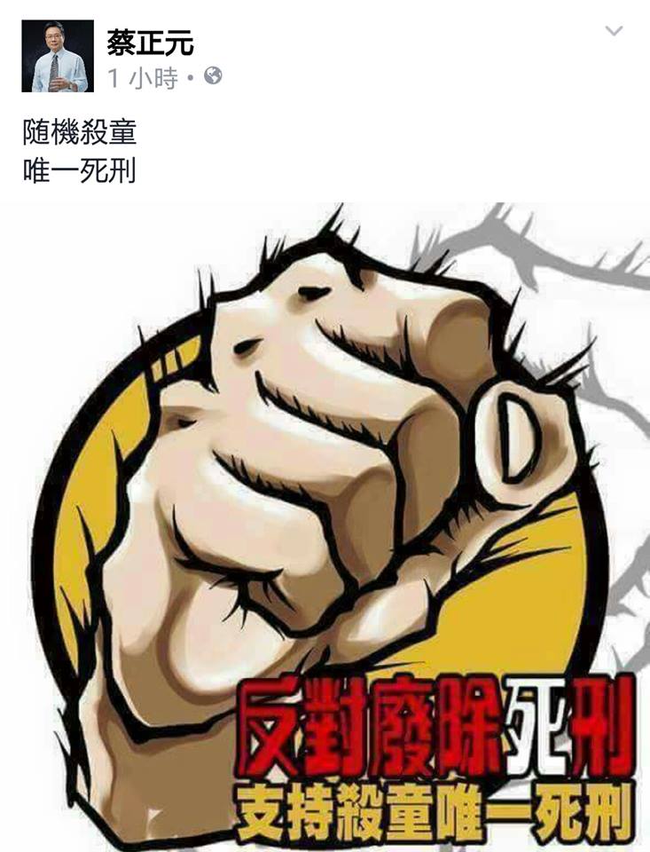 當你與蔡正元意見相同的時候,請深思為什麼居然會跟這種人志同道合,是不是自己在情緒中,或是正在什麼政治圈套中。 其實我本人並不是特別支持廢死聯盟的主張,但是我反對社會集體被操弄把仇恨和情緒對沒有犯罪的人宣洩。