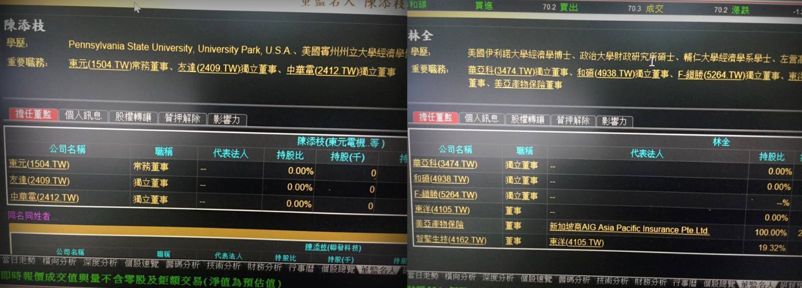 陳添枝是東元常董,也是友達,中華電信獨董,跟林全一樣都是「獨董幫」的貴族。