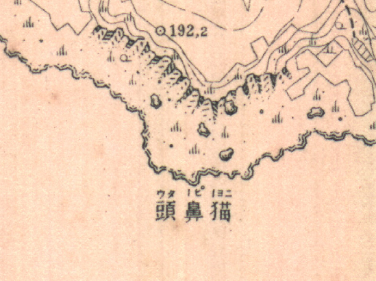 此外,臺灣南端的「猫鼻頭」也是「niau」。〈臺灣堡圖〉記錄其發音為「ニヨーピータウ 」,亦即「nio-phīnn-thâu」。有趣的是,這是潮州腔。