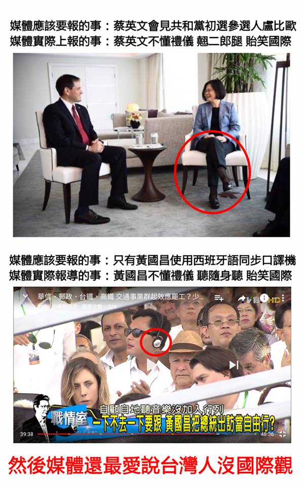 參考自詹雅仁的文章 「蔡英文拜訪的是盧比歐,這個人是誰麻煩至少也做一下功課。 佛羅里達眾議院院長、共和黨總統初選參選人」(轉自晨塵醫師粉專) . 結果TVBS在研究蔡英文翹腿的姿勢...這就是中(華民)國普及率+收視率最高的(御用)新聞媒體的水準。同媒體平常都在嘲笑台灣大學生沒有國際觀。(完)