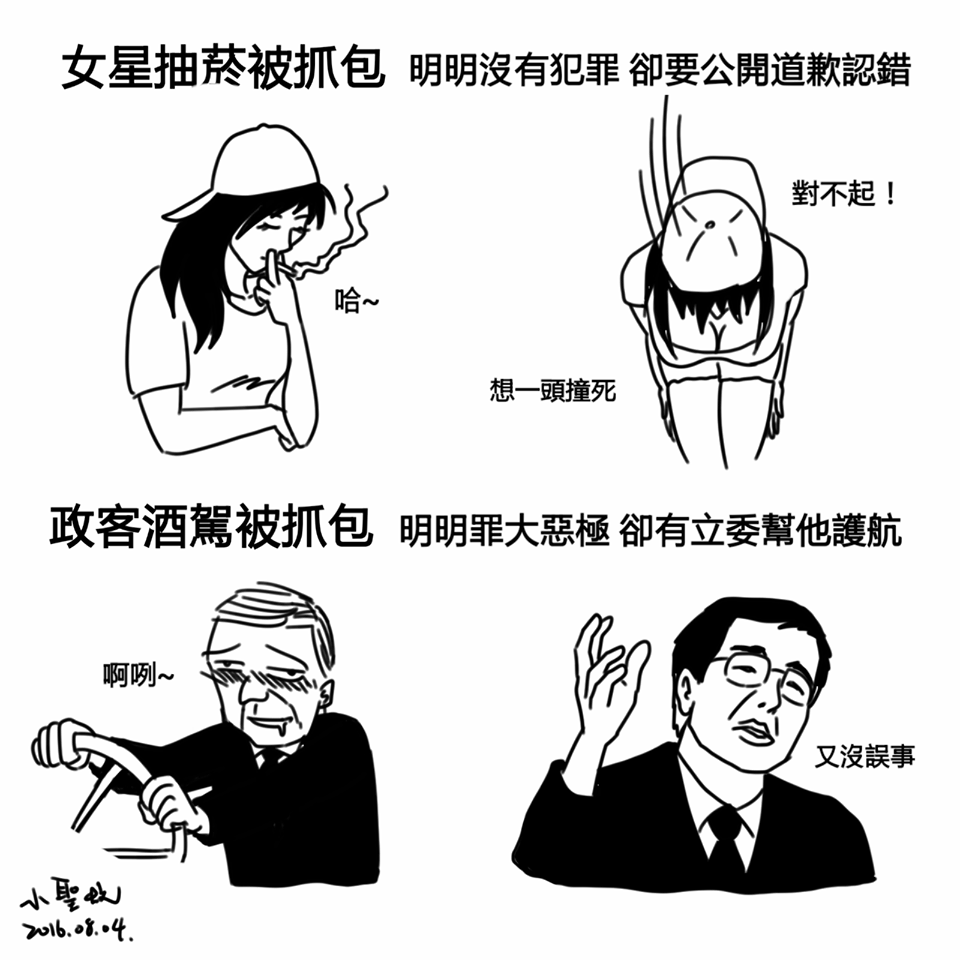 今天的兩個新聞,我都不知道這些人的道德標準到底是怎麼了... [阿喜哈菸遭抓包,臉書鞠躬致歉] 你又不是反菸大使,抽個菸道什麼歉?不需要這麼假掰吧。 [江春男酒駕,黃偉哲:沒誤事不需撤換] 酒駕就是隨機殺人,你還好意思護航? 醒醒吧,你不但沒有妹妹,還沒有大腦。