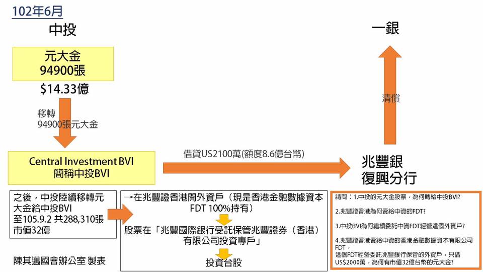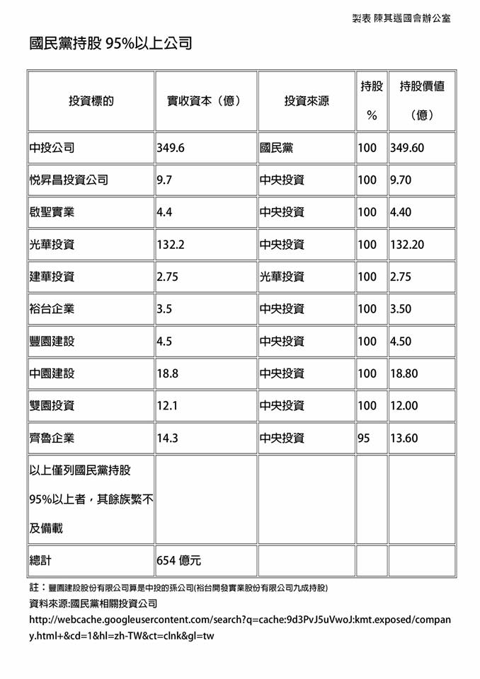 2.黨產會在10月7日聽證會,判定中投公司轉投資、分公司為國民黨的附隨組織。