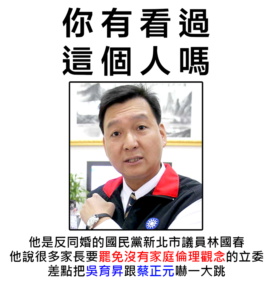 【虛驚一場】 黨內互打正夯,幸虧祭止兀和WEGO昇已經不是立委,否則會被自己人罷免。 反同婚 藍議員:家長打算罷免無家庭倫理觀念立委 http://news.ltn.com.tw/news/politics/breakingnews/2016755 蔡正元與馬尾妹的關係 傳是與前妻離婚主因 http://www.appledaily.com.tw/realtimenews/article/new/20160518/864448/ 直擊 立委吳育昇 帶香奈兒美女上薇閣 http://www.appledaily.com.tw/appledaily/article/headline/20091113/32088296/
