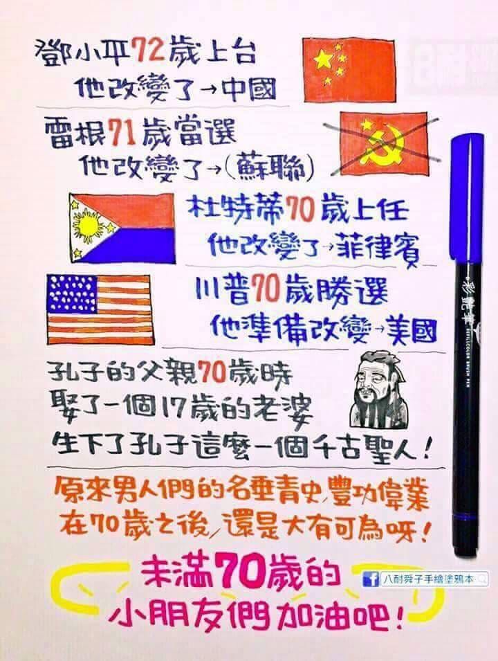 有朋友寄來下面這則期許,看來「人生七十才開始」確有其事。
