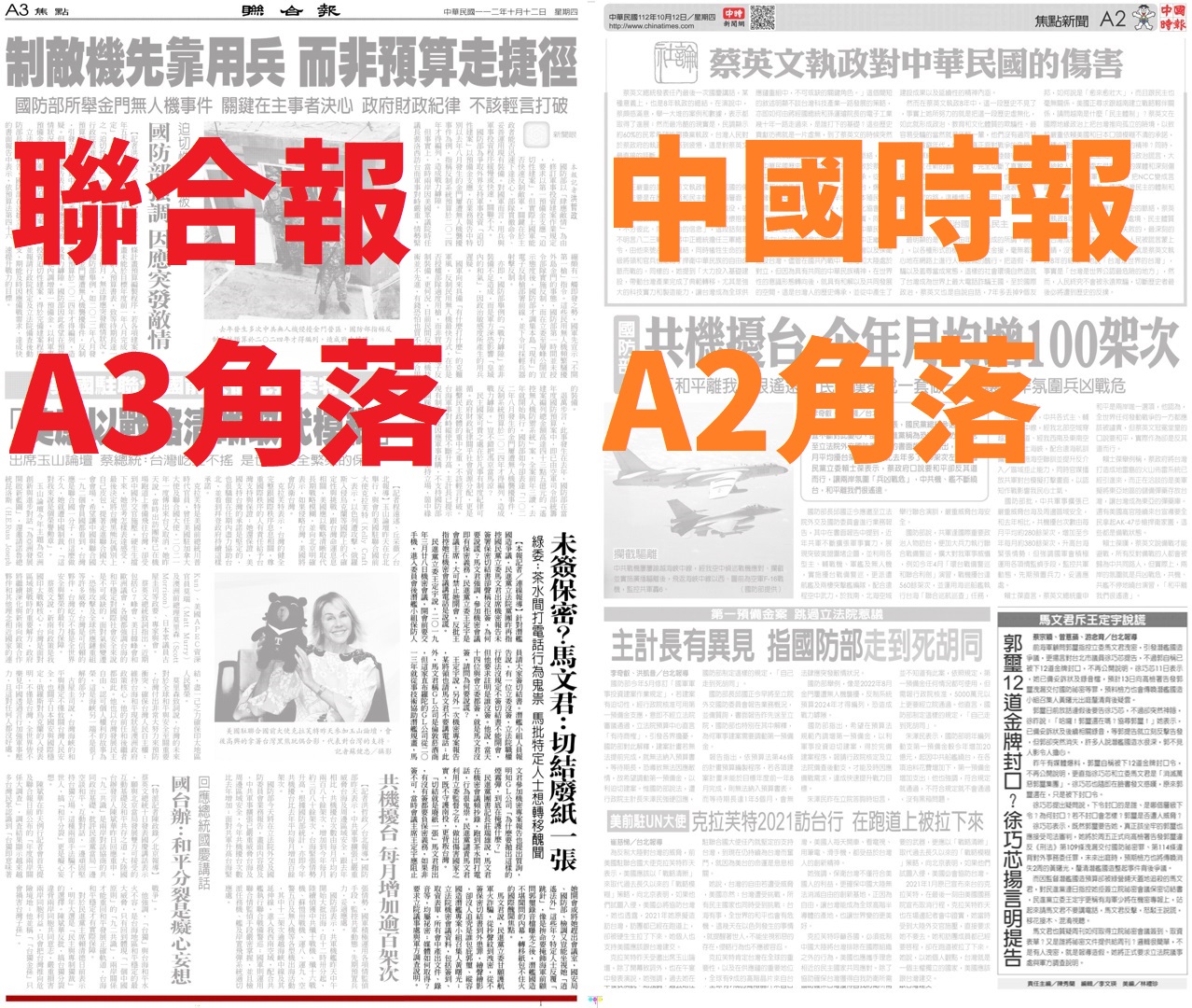 今日閱報,沒在兩小報看到馬文君新聞,用搜尋才發現,原來都在同樣的位置、沒有照片。這難道又是國台辦下令?