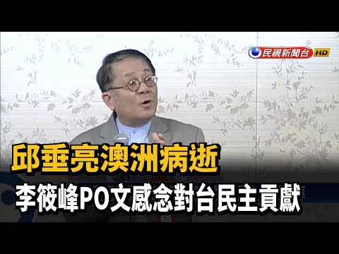 邱垂亮澳洲病逝 李筱峰PO文感念對台民主貢獻